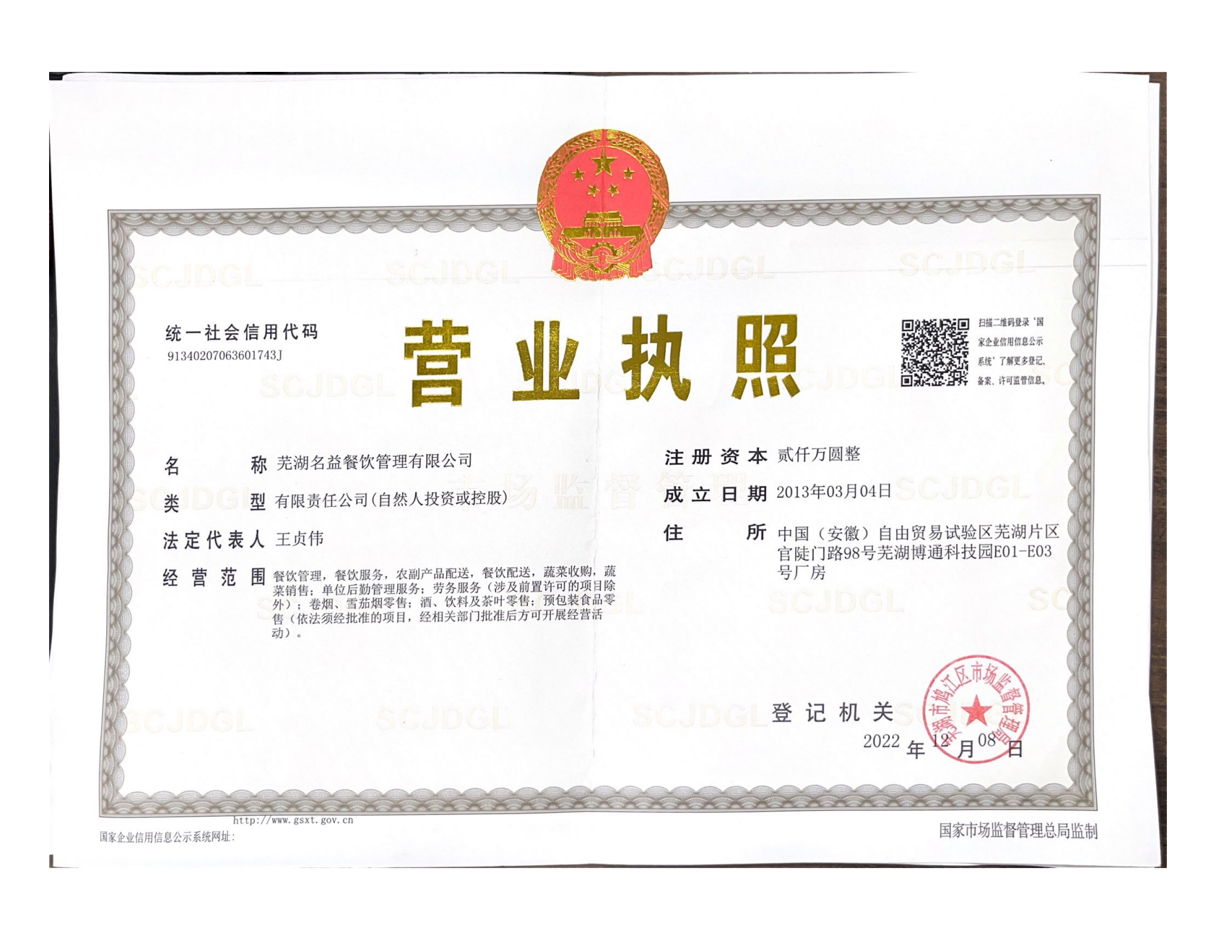 地址:蕪湖市鳩江區(qū)官陡門(mén)路98號(hào)博通科技園名益餐飲管理有限公司